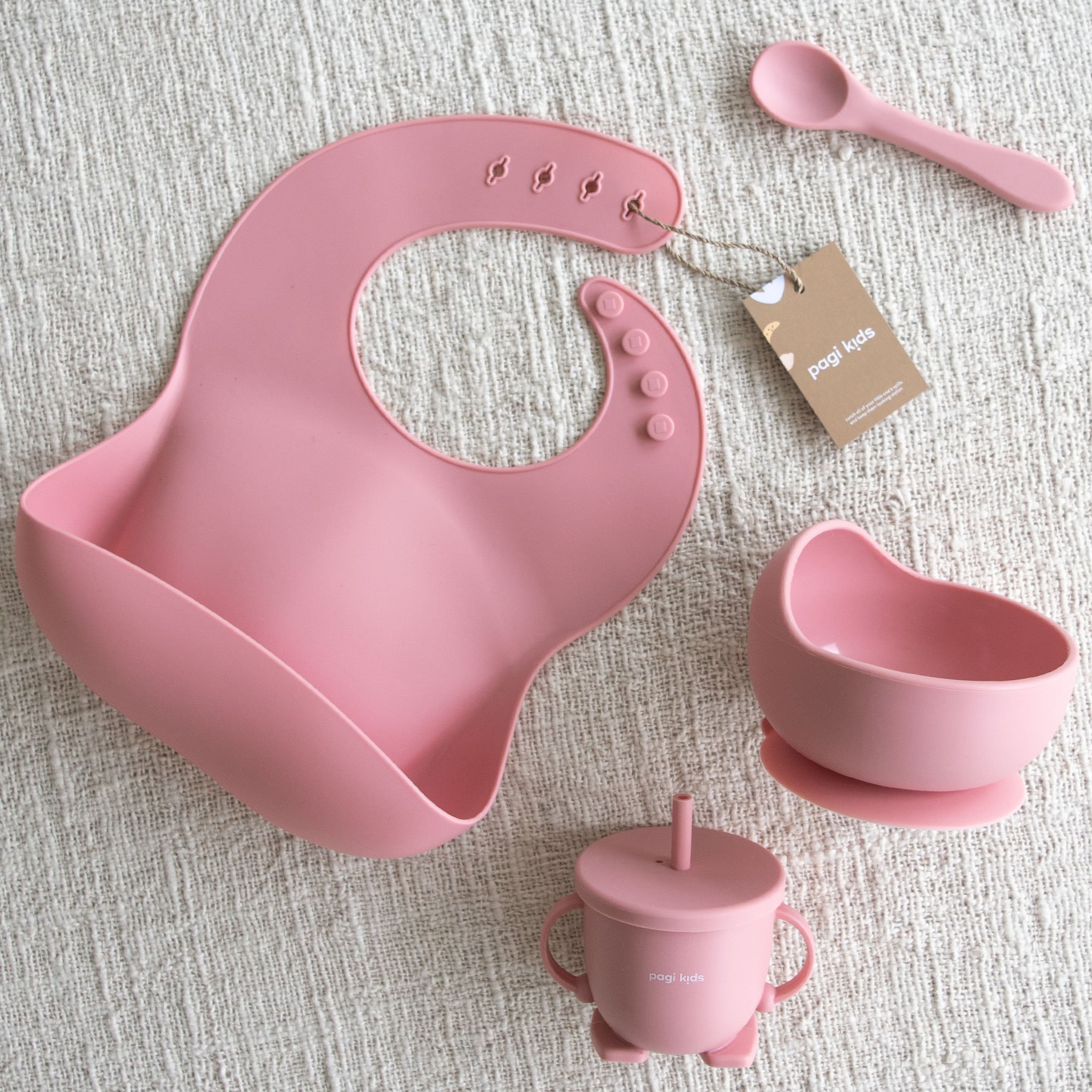 Designed to help with the transition to solid foods for babies and younger children, our durable, lightweight, and flexible feeding sets are made of 100% FDA approved, food-grade silicone.
